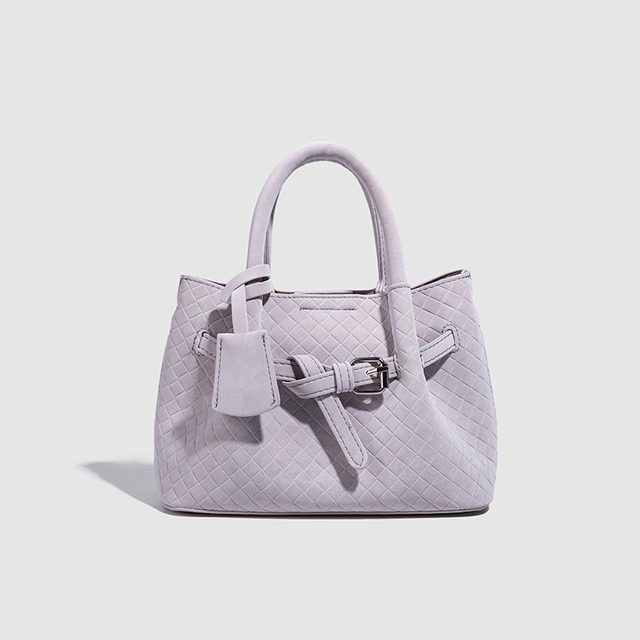 上品で洗練された大人の女性にぴったり。 キルティング加工が施された、クラシカルで高見えするハンドバッグの登場です。 やわらかなフェイクスエード素材に、フロントのベルトデザインがアクセントとなり、シンプルながらも存在感のある仕上がりに。 カジュアルからきれいめまで、どんなスタイルにもマッチする万能バッグです。 内側にはファスナーポケット付きで実用性も抜群。しっかりと自立するフォルムで、デイリーからお出かけ、通勤シーンまで幅広く活躍します。 ✅ 商品詳細 カラー展開:1色(ラベンダーグレー) サイズ(約): 高さ:15cm/幅:21cm/マチ:10cm 素材:PU 仕様: ・ファスナー開閉 ・内ポケット(ファスナー付き×1、オープンポケット×2) 付属:取り外し可能なチャームタグ付き ✨おすすめポイント✨ 〇高級感のあるキルティング加工 〇軽量で使いやすく、毎日使いたくなる 〇季節問わず使えるエレガントデザイン 〇ギフトにもおすすめ◎