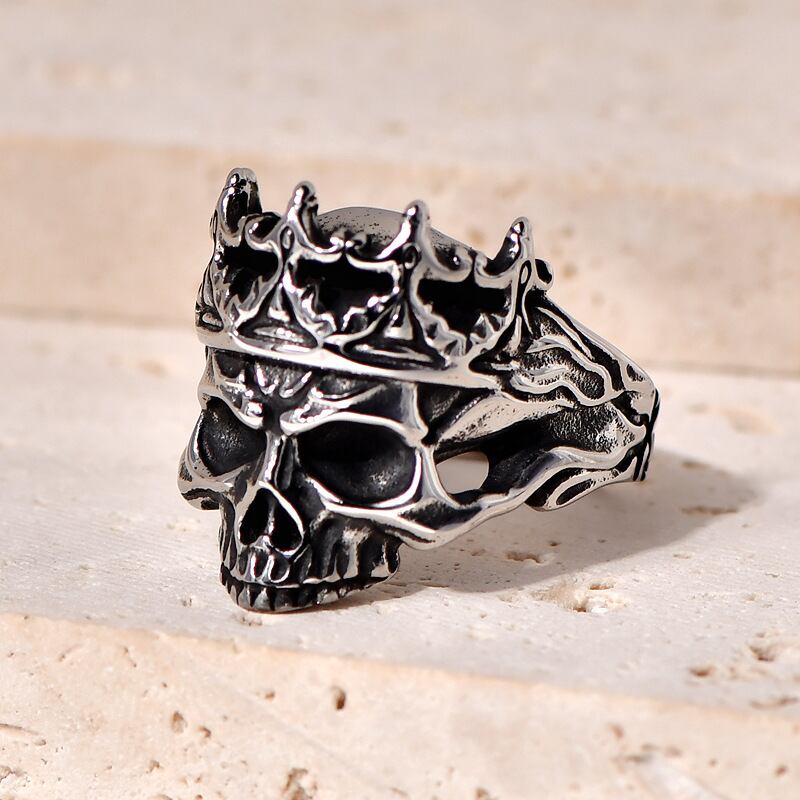 チタン鋼スカルクラウンリングByメンズリングジュエリー