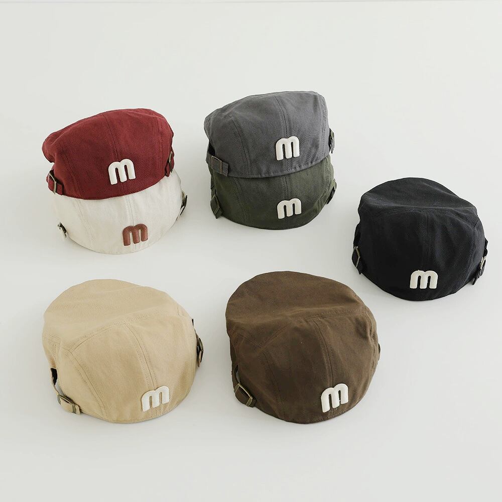【キッズサイズ52cm】M刺繍入り おしゃれ後ろ向きキャップ(ハンチング風) 全7色