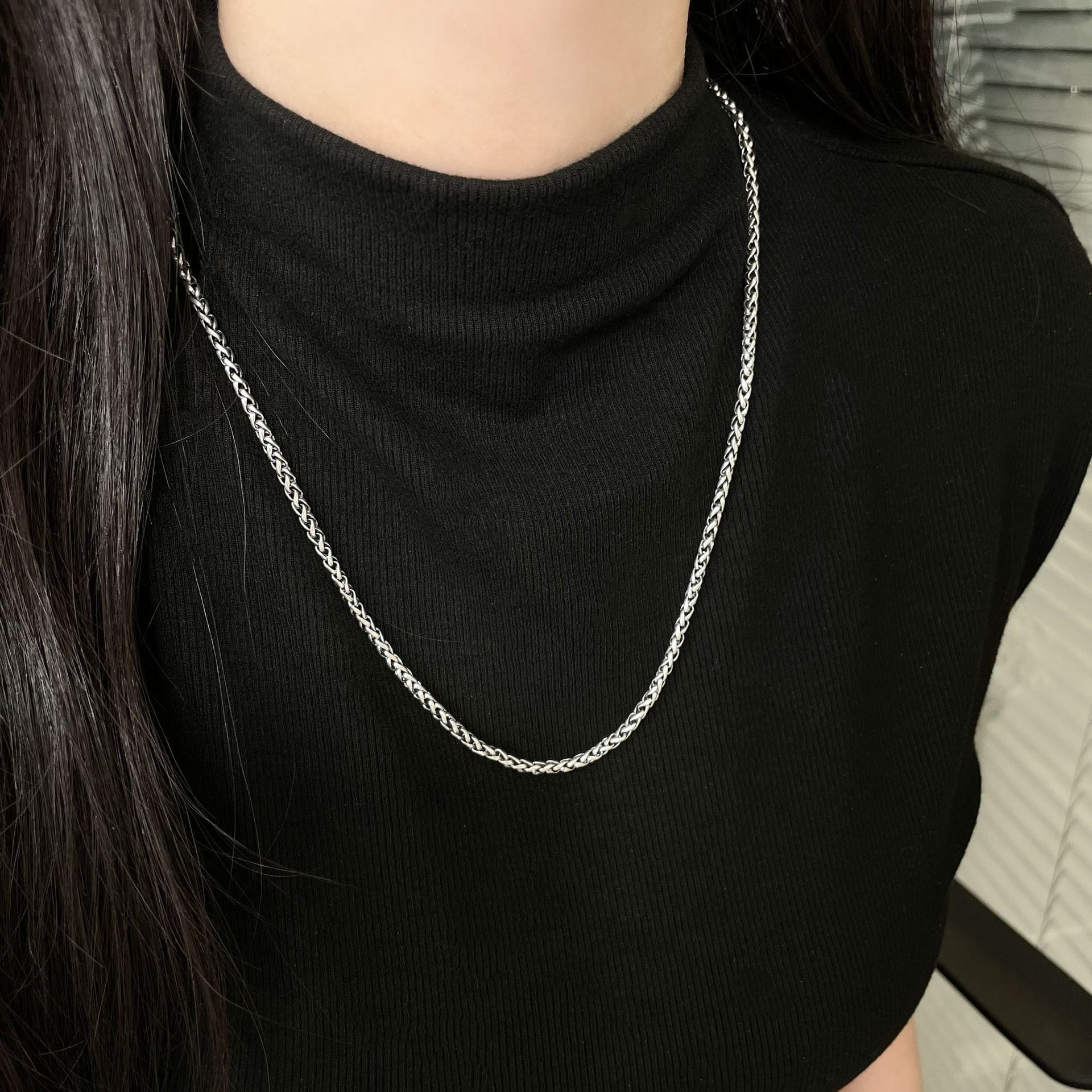 シンプルな無地Tシャツの上にこのチェーンを一つ加えるだけで、グッとスタイルに深みが生まれます。