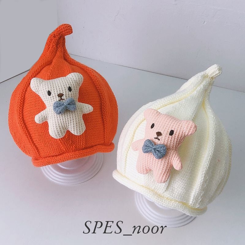 暖かくてかわいい、くまさん付きのニット帽。この冬、愛らしさ溢れるお子さまのスタイルを楽しませてください!