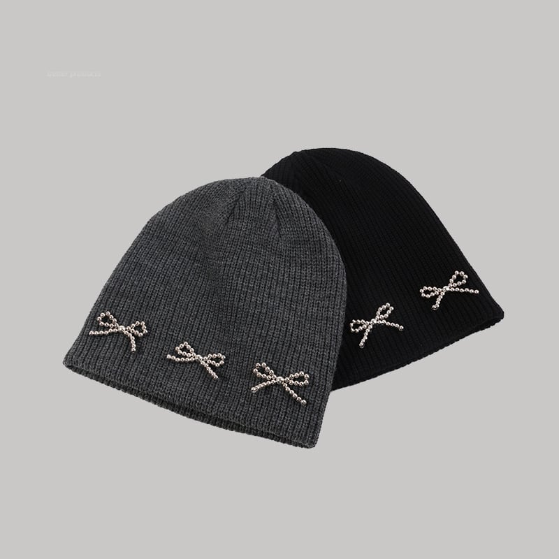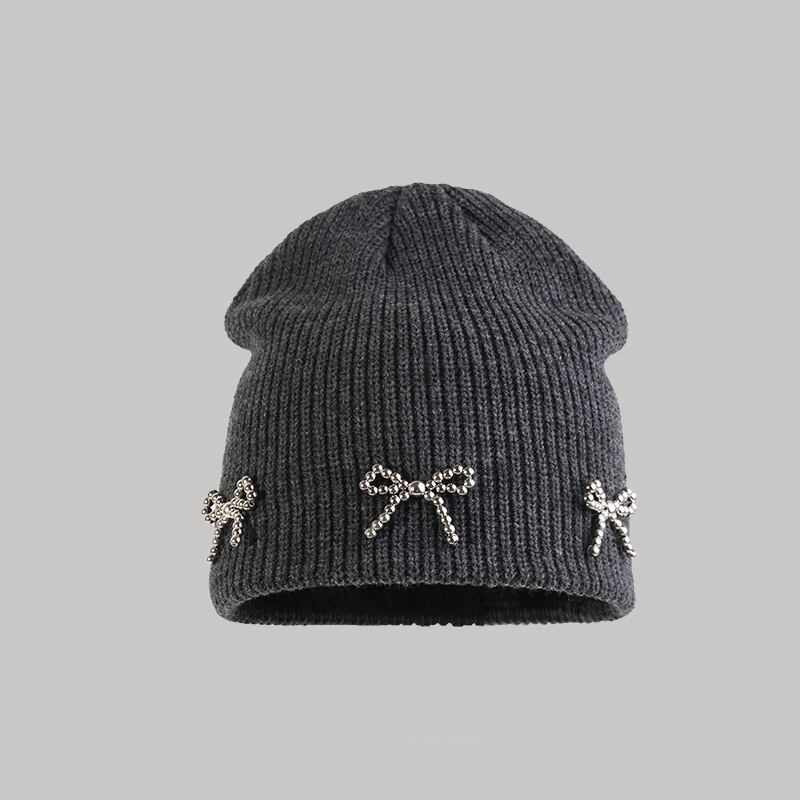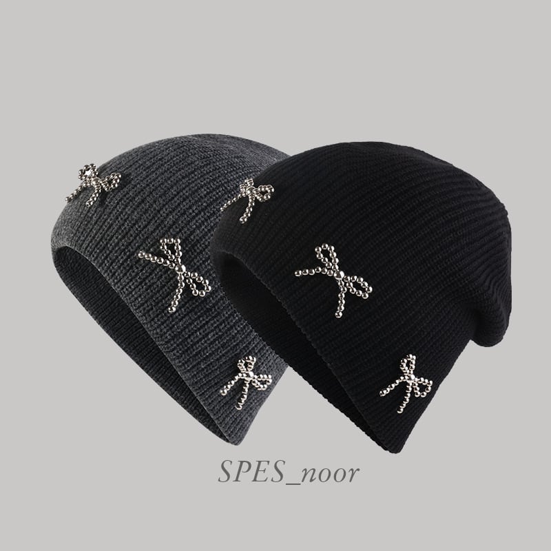 メタルリボン付きビーニー|ストリート×ガーリー ニット帽 冬コーデに映えるアイテム