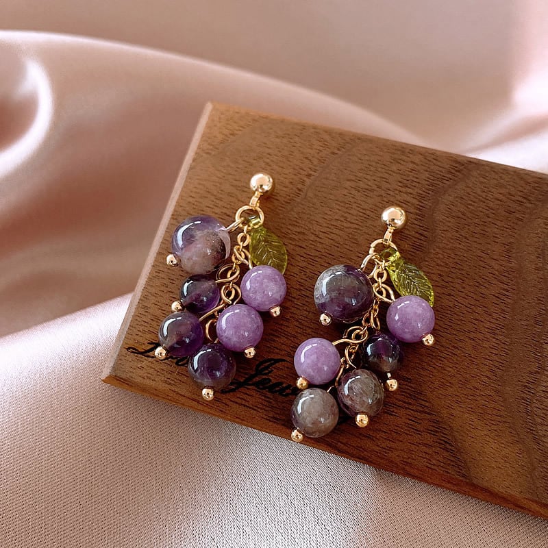 「パープルグレープピアス|葡萄モチーフ・天然石風ビーズ・韓国可愛い系」