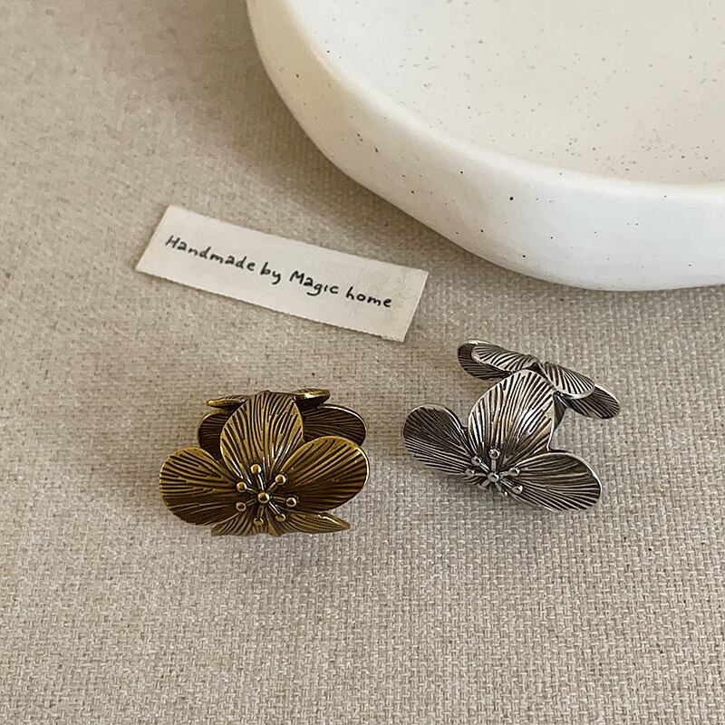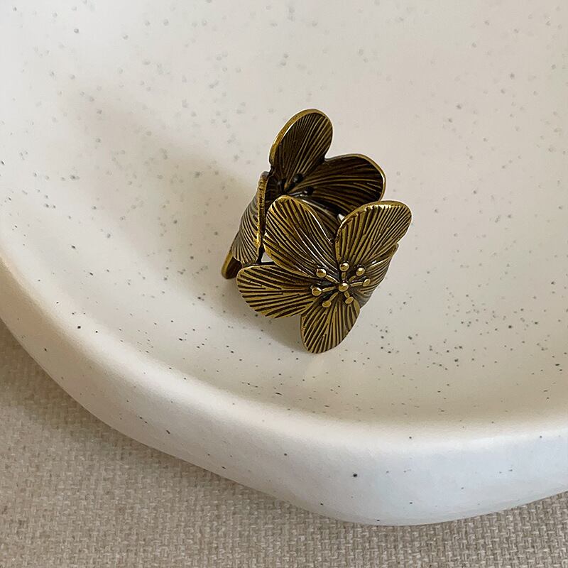 「ヴィンテージ花びらデザイン・オープンリング(シルバー/ゴールド) —— フラワーモチーフの大人可愛い調節可能リング」