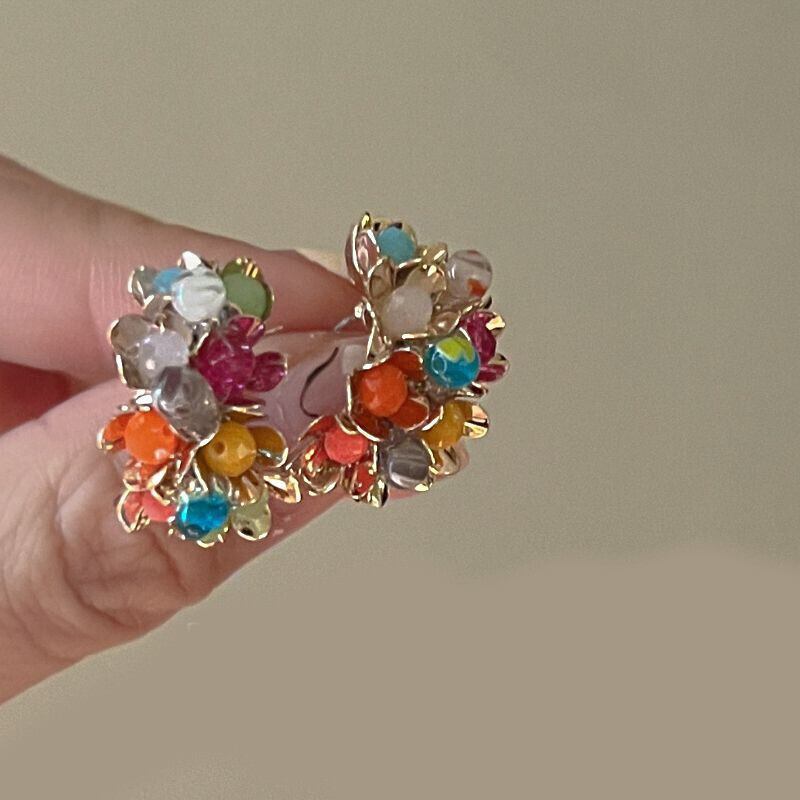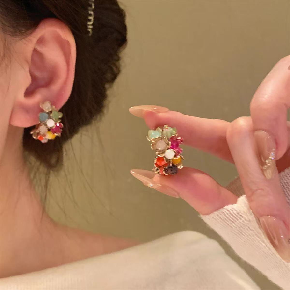 「カラフルストーン × フラワークラスター ピアス|大人可愛いビジューイヤリング|華やかデザイン」