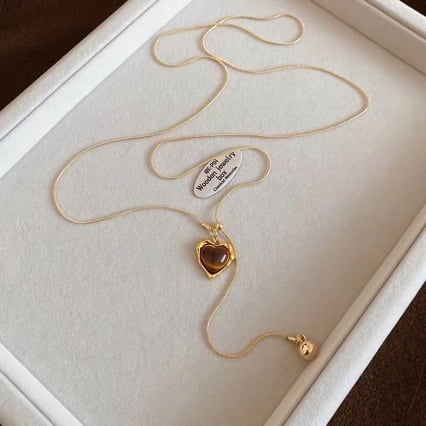 「Y字ロングネックレス|ハートチャーム ゴールド 大人上品 スライド調節可」
