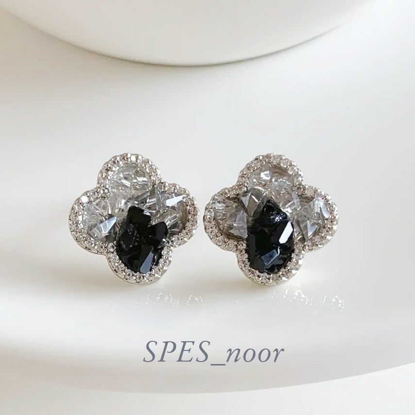 ブラック×クリアのビジューが贅沢に散りばめられたピアスです。