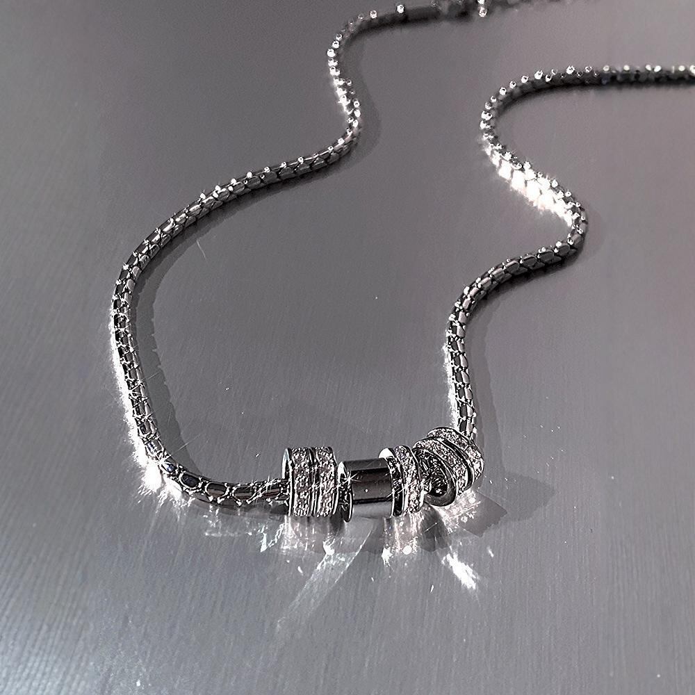 シルバー スネークチェーン ネックレス|ダブルリング×メタルビーズ デザイン|ユニセックス 上品モード