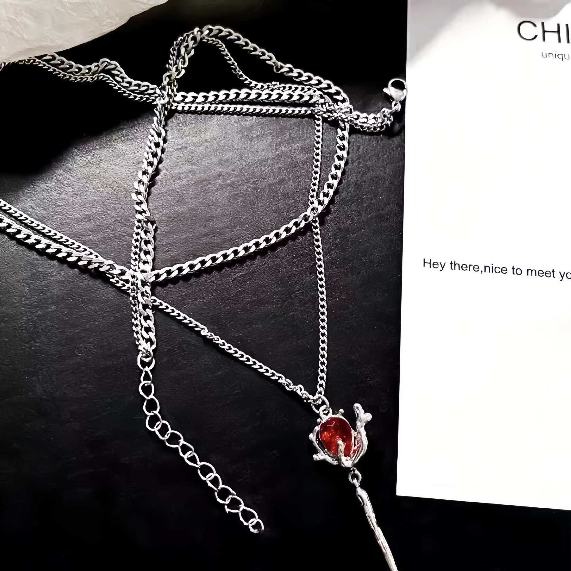 【シルバー925風】レッドストーン×ハンドモチーフ チェーンネックレス|Y2K・韓国ストリート・ユニセックス