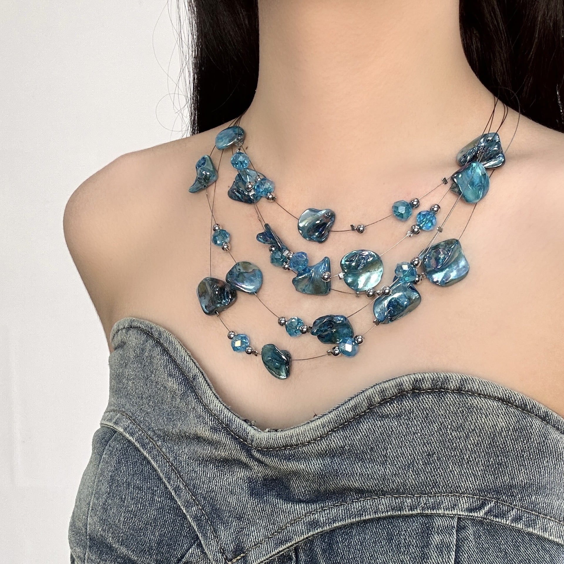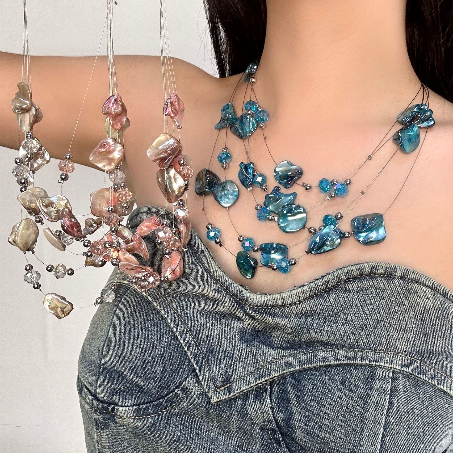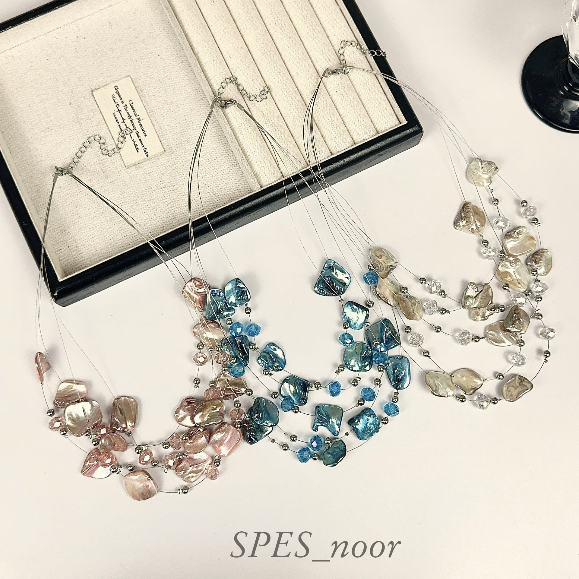 多連シェルネックレス レディース|天然シェル×ワイヤーデザイン|ブルー/ベージュ/ピンク|軽やか華やか首元アクセ