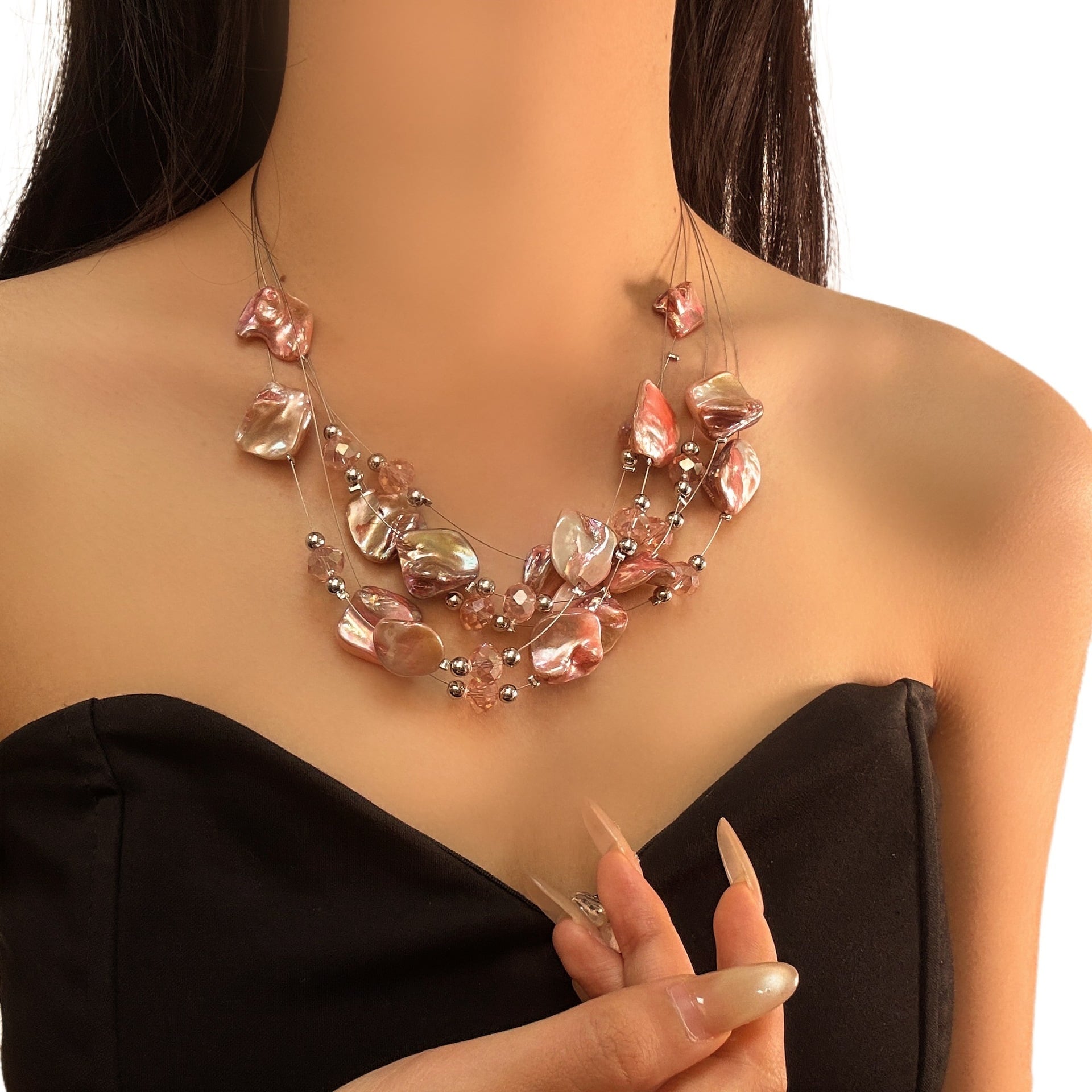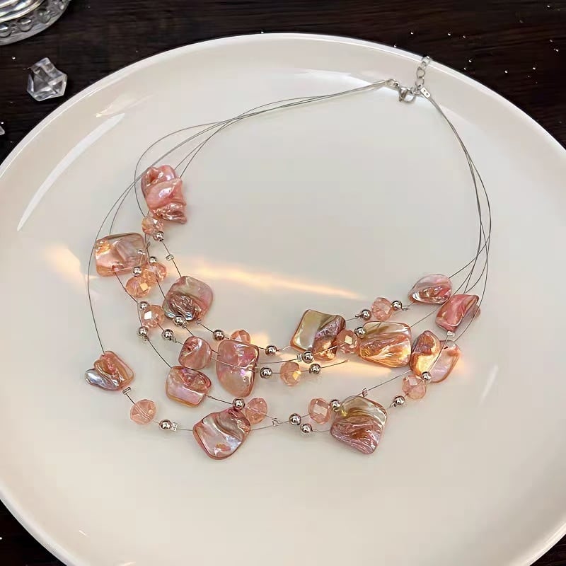 首元にふわっと華やかさを添える、多連シェルネックレスです。
