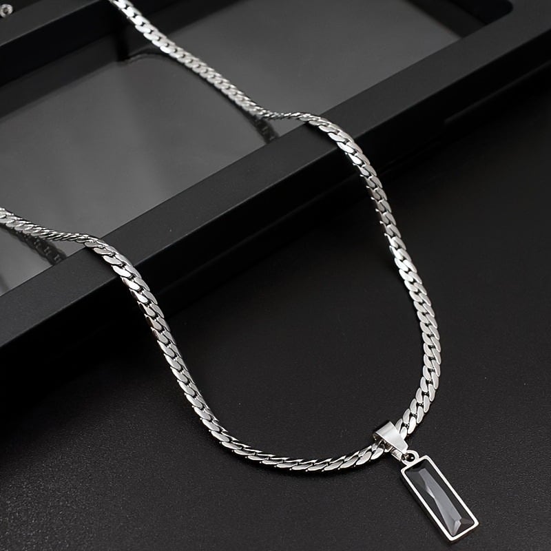 【ブラックジルコン×シルバー】エンボスカットネックレス|50cm+5cm|ユニセックス・重ね付け◎