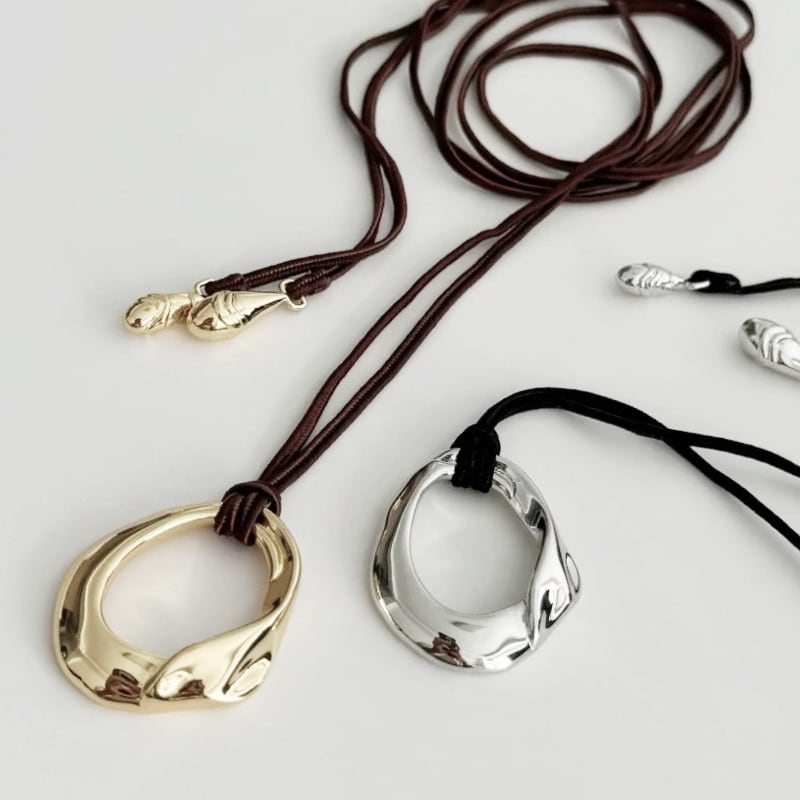 有機リングモチーフ ロングコードネックレス|ゴールド/シルバー|80cm 調整可
