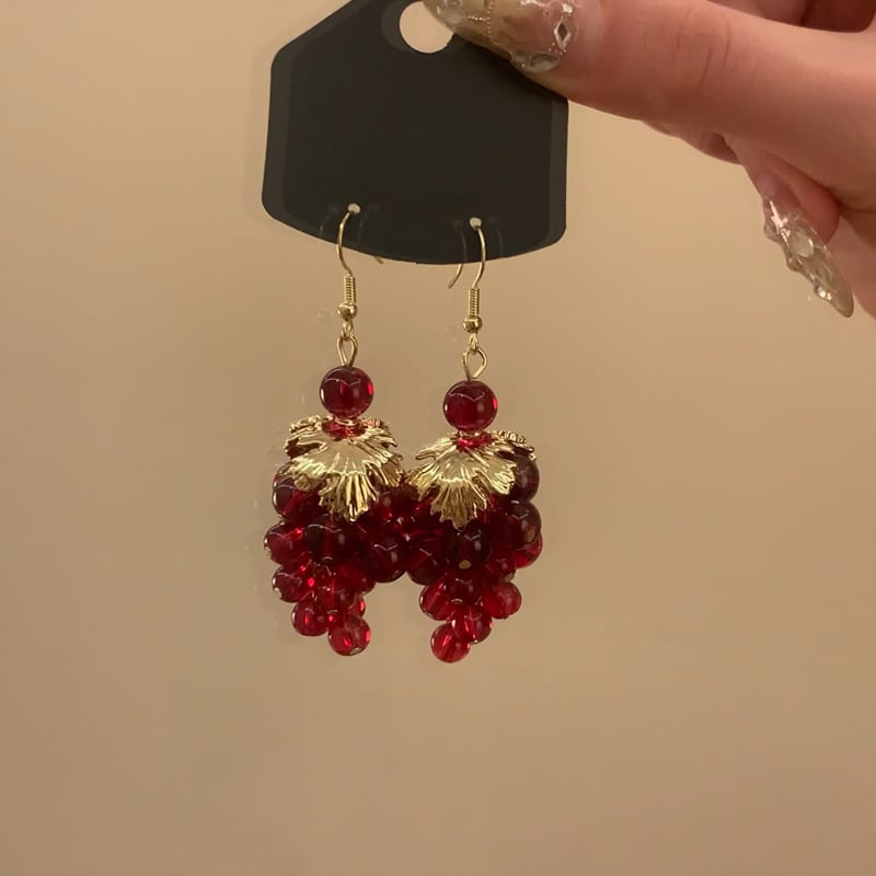 ころん、と実った赤いベリーが連なった葡萄モチーフのピアス。