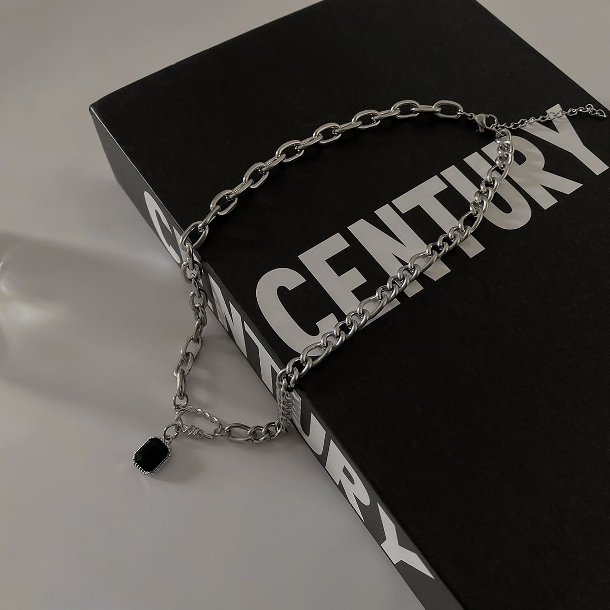 ブラックストーン チェーンネックレス|シルバー 韓国風 シンプル モード 大人アクセサリー レディース