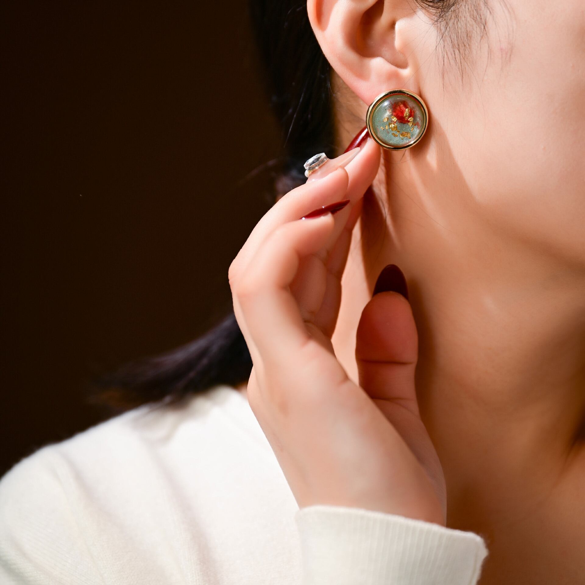 【金箔×フラワー封入ピアス】大人可愛いニュアンスグリーン|透明感レジン×ゴールドフレーム|韓国風・上品アクセサリー