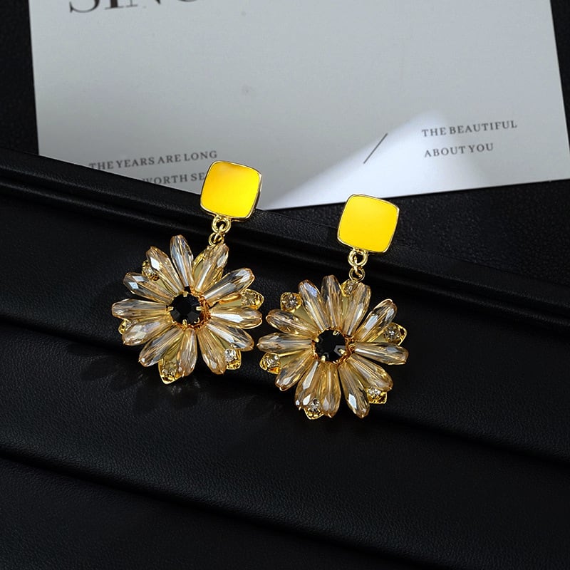 【大ぶりフラワー×ネオンカラー】2WAY風 ビジューフラワーピアス|韓国風 ゴールド 揺れる 華やか 個性派アクセサリー